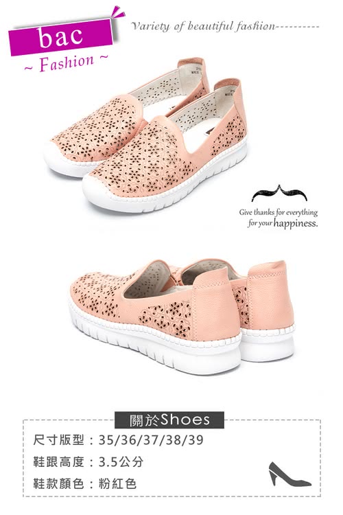 【bac】心花怒放-雷射雕花舒適真皮包鞋(粉紅色) 評價