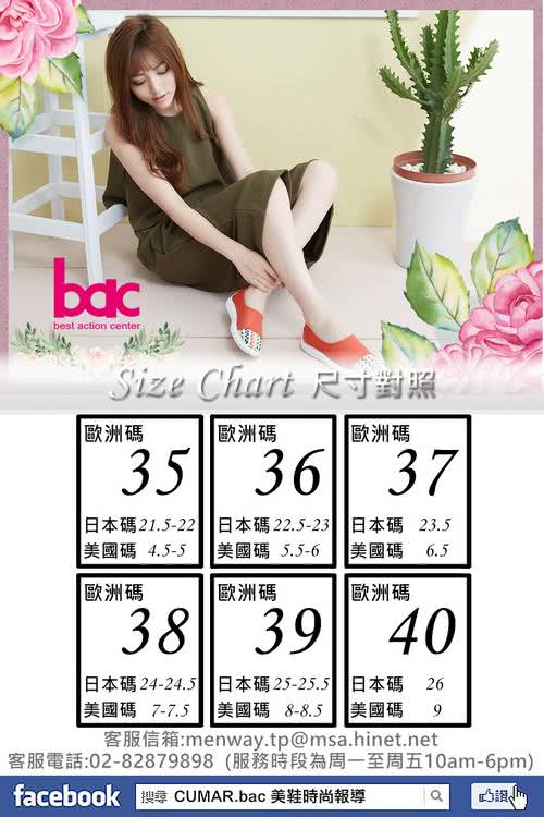 (對於選擇尺碼有疑問時歡迎來電客服專線, 客服人員將貼心建議您適合的尺寸,以減少您換貨等待的時間)